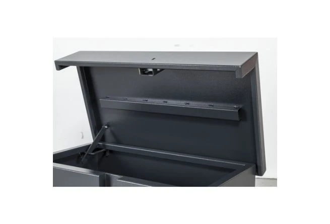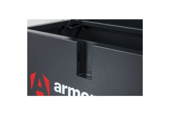 The lid is secured with a 5-lever lock with heavy duty chubb style keys supplied. To order replacement keys there is a welded security ID on the side.
