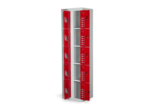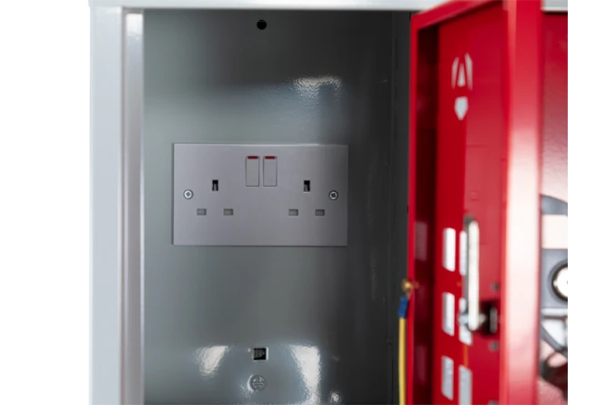 The Armorgard Powerstation is a battery charging locker bank. Designed to charge power tool batteries whilst keeping them safe & secure – Ideal for the site office. Ten separate compartments, each containing double sockets connected in series to a 230V RCD protected plug.