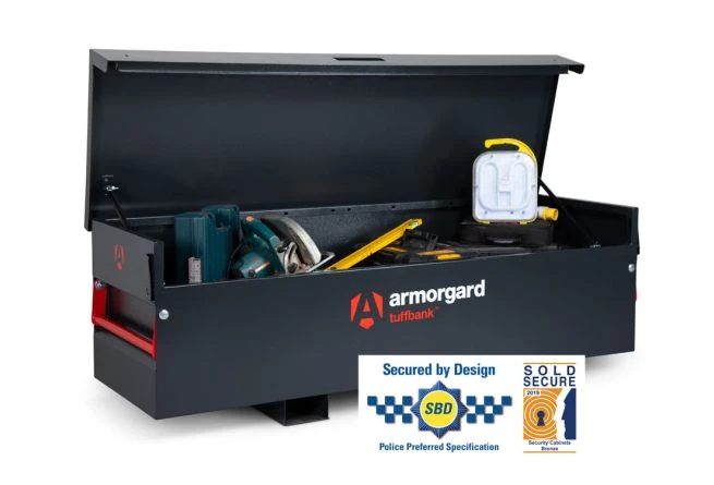 Optional extras include a storage shelf or Armorgard PowerShelf
