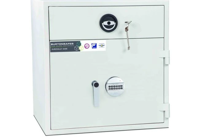 The Burton Eurovault Aver is a high security Eurograde 1 deposit safe. It has an insurance rating of £10,000 for cash and £100,000 for valuables. It can be anchored to the base for added for security.