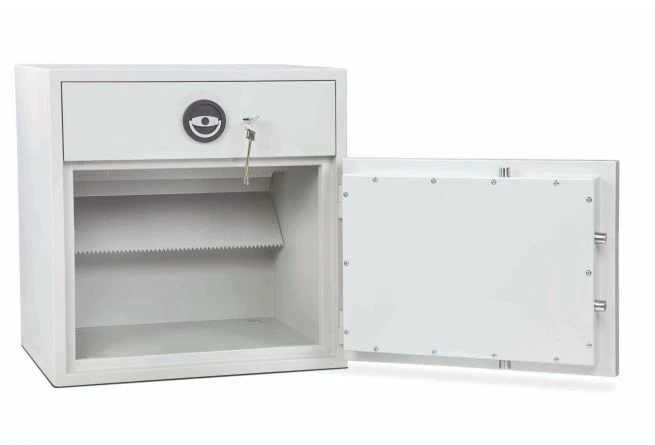 The Burton Eurovault Aver is a high security Eurograde 1 deposit safe. It has an insurance rating of £10,000 for cash and £100,000 for valuables. It can be anchored to the base for added for security.