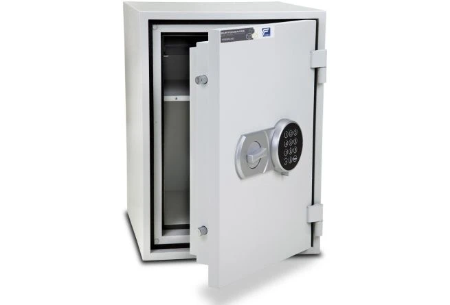 The Burton Firebrand is a fireproof safe that offers 60 minutes fire protection for paper documents. It has an insurance rating of £1,000 for cash and £10,000 for valuables. It can be anchored to the base for added security.