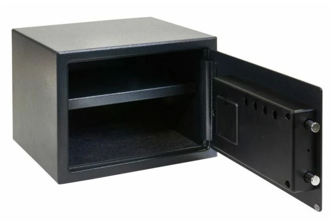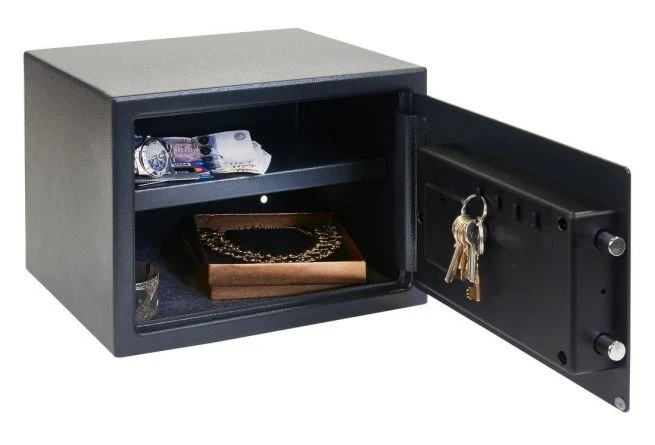 The safe has external dimensions of 250 x 350 x 250 mm (HxWxD) and weighs 11 kg. The internal dimensions are 240 x 340 x 200 mm (HxWxD).