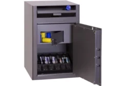 The Chubbsafes Omega is secure deposit safe that can be used in any commercial environment that requires regular deposits of cash or valuables. It has an insurance rating of £3,000 for cash and £30,000 for valuables. It can be anchored into the base for added security.