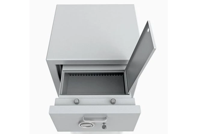 Safe door and drawer trap are equipped with high security double bitted key lock, 2 keys supplied per lock (both EN 1300 approved)