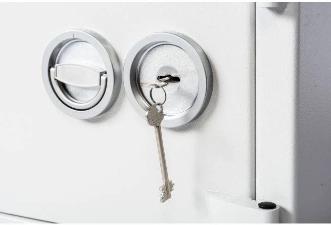 Take into account the management of a double-bit key, these are often long keys that you should store safely. Should a burglar find the safe key, he has unimpeded access to the safe. A variant with a key lock requires good and secure key management. Therefore always consider an electronic code lock.