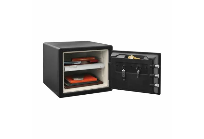 The Master Lock LFW082FTC is a Digital Safe designed to protect paper documents along with media such as USB Sticks, Portable Hard Drives and Memory Sticks. It also has the added feature of water resistance up to 120mm for a 24 hour period.