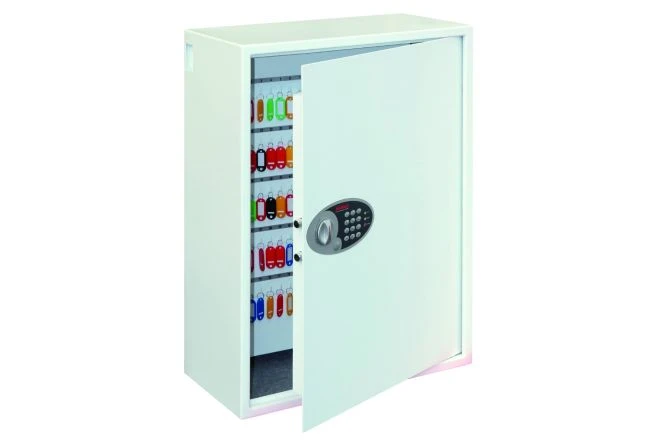 The Phoenix Cygnus key cabinet has a digital electronic lock and a deposit slot on the side for quick deposits of keys. It is ideal for a car dealership, estate agent or hotel to securely store multiple key sets.
