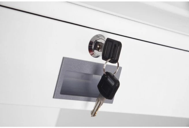 Full width internal lockable drawer, height = 45 mm. 2 keys included