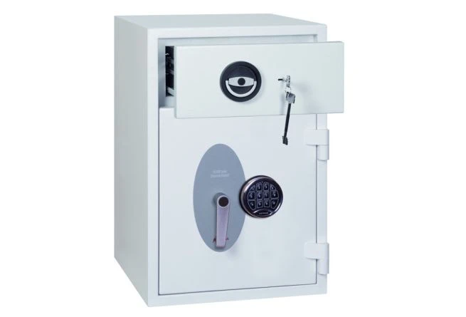 The Phoenix Diamond is a high security Eurograde 1 deposit safe. It has an insurance rating of £10,000 for cash and £100,000 for valuables. It is equipped with a deposit drawer that has a double bitted key lock for added security.