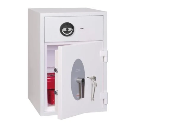 The Phoenix Diamond is a high security Eurograde 1 deposit safe. It has an insurance rating of £10,000 for cash and £100,000 for valuables. It is equipped with a deposit drawer that has a double bitted key lock for added security.