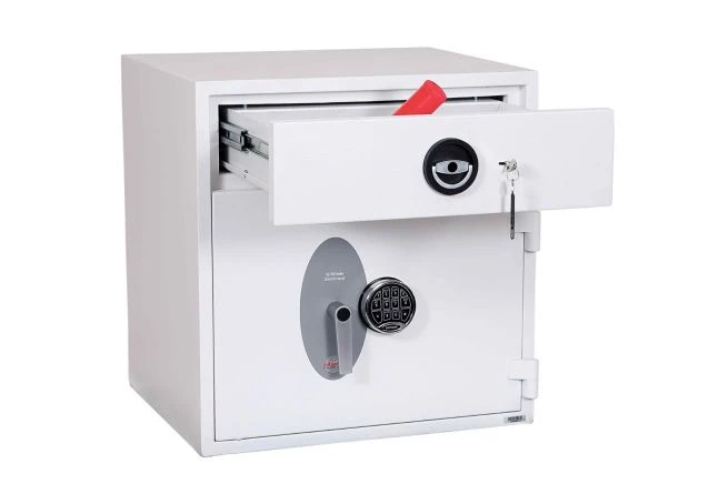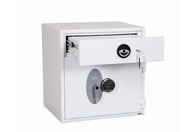 The Phoenix Diamond is a high security Eurograde 1 deposit safe. It has an insurance rating of £10,000 for cash and £100,000 for valuables. It is equipped with a deposit drawer that has a double bitted key lock for added security.