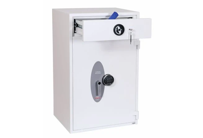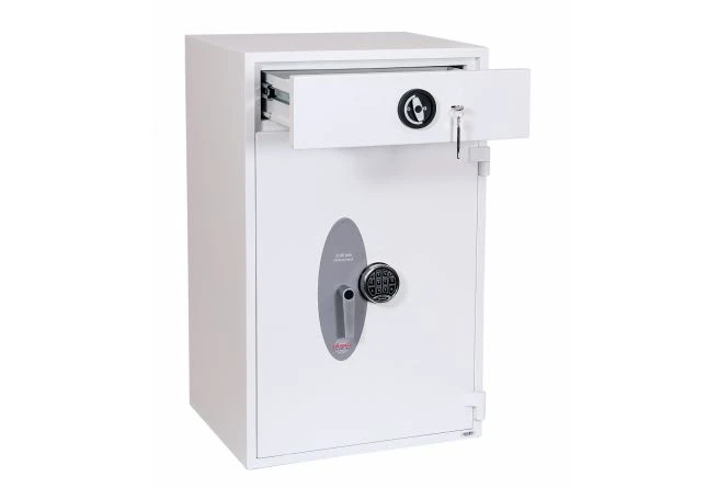 The Phoenix Diamond is a high security Eurograde 1 deposit safe. It has an insurance rating of £10,000 for cash and £100,000 for valuables. It is equipped with a deposit drawer that has a double bitted key lock for added security.