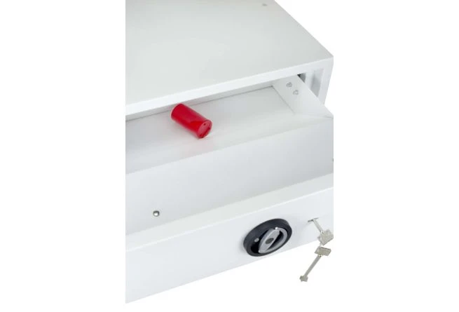 Safe door and drawer trap are equipped with high security double bitted key lock, 2 keys supplied per lock (both EN 1300 approved)