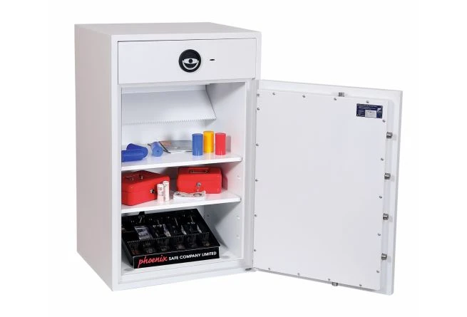 The Phoenix Diamond is a high security Eurograde 1 deposit safe. It has an insurance rating of £10,000 for cash and £100,000 for valuables. It is equipped with a deposit drawer that has a double bitted key lock for added security.