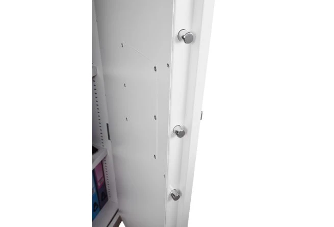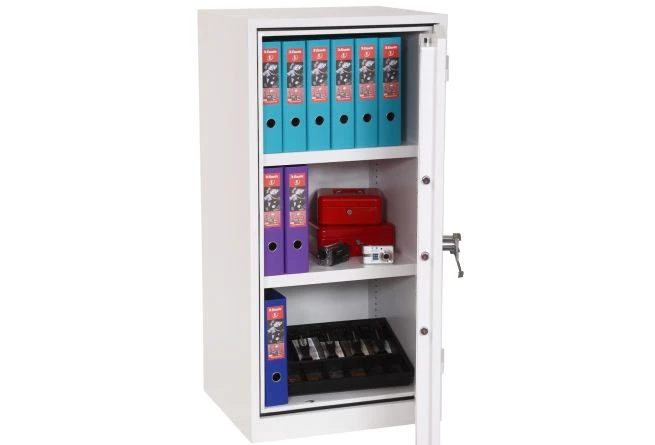 The Phoenix Fire Ranger S1 is a fireproof cabinet that offers 30 minutes fire protection for paper documents. It has an insurance rating of £2,000 for cash and £20,000 for valuables. It can be anchored to the base for added security.
