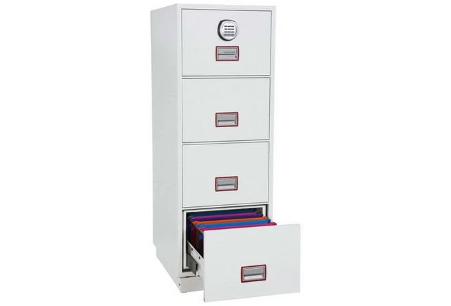 The Phoenix Fire File is a fireproof filing cabinet that offers 90 minutes protection for paper documents. It is ideal for any office environment and it can store Foolscap, A4 and A5 files on width adjustable rails.