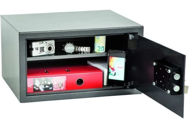 The Phoenix Vela is a compact safe suitable for the home or small office. It has an insurance rating of £1,000 for cash and £10,000 for valuables. It can be anchored to the base or back wall for added security.