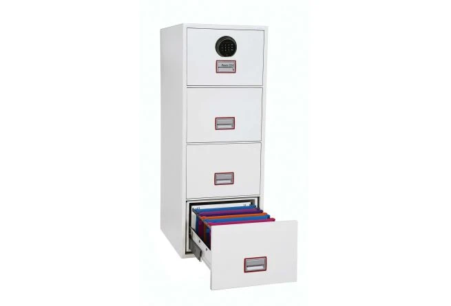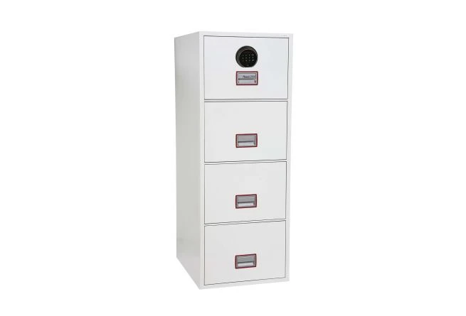 The Phoenix Fire File is a fireproof filing cabinet that offers 90 minutes protection for paper documents. It is ideal for any office environment and it can store Foolscap, A4 and A5 files on width adjustable rails.