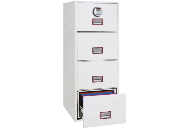 The Phoenix Fire File is a fireproof filing cabinet that offers 120 minutes protection for paper documents. It is ideal for any office environment and it can store Foolscap, A4 and A5 files on width adjustable rails.