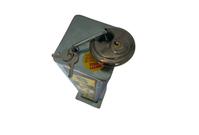 Secured in upright position with a discus padlock with a hardened shackle – Padlock and Keys Not Supplied (Please purchase separately)