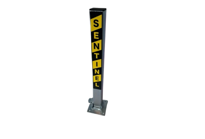 This security post is the Sentinel SS-4 fold down security post and is designed to be surface mounted to concrete.