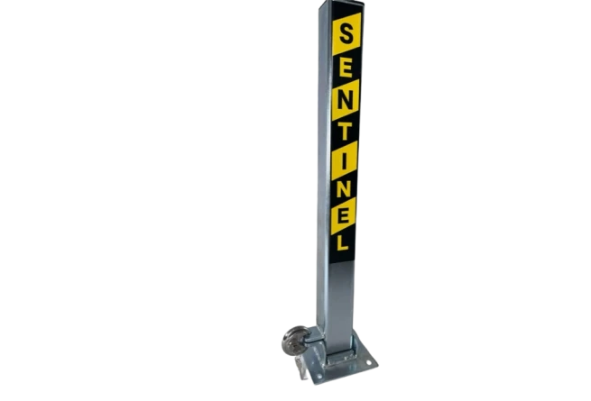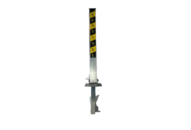 This security post is the Sentinel SS-5 fold down spigot security post and is designed to be installed into concrete, block paving or tarmac. The spigot is 250mm long and provides added security once secured.
