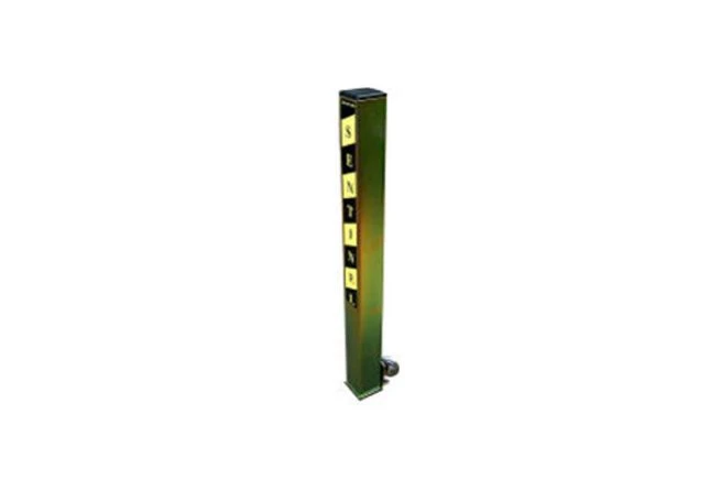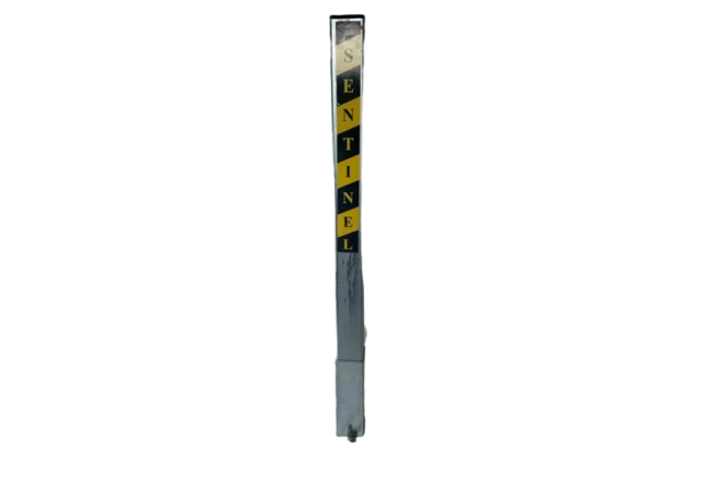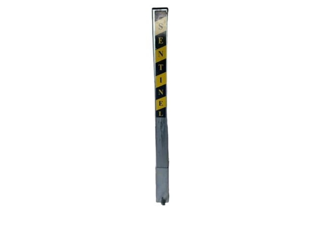 This removable security post is the Sentinel SS-7 and is designed to be secured into concrete with a 250mm base unit. The post is locked in place with a discus padlock.