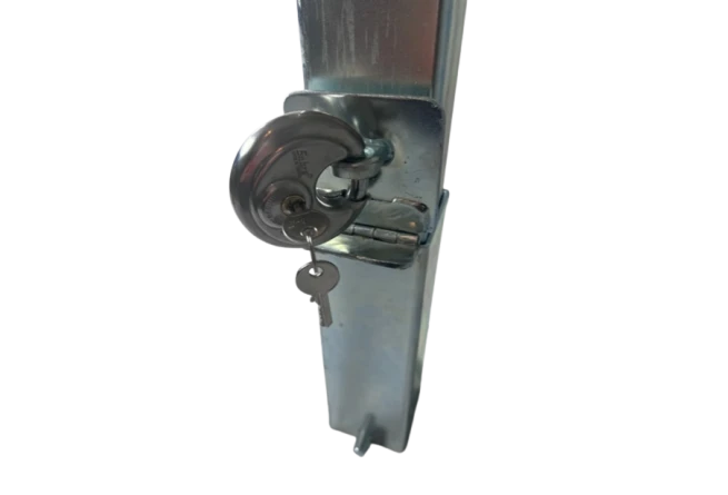 Secured in upright position with a discus padlock with a hardened shackle – Padlock and Keys Not Supplied (Please purchase separately)